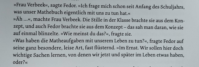 Ich bin über dieses großartige Buch gestolpert. Eine Mädchen, das bei mir in der Dyskalkulie-Therapie war, hat es für mich probe gelesen und war absolut begeistert. Unsere ständigen Diskussion darüber, dass sie das doch nie brauche und Mathe völlig unwichtig sei waren danach vorbei.
